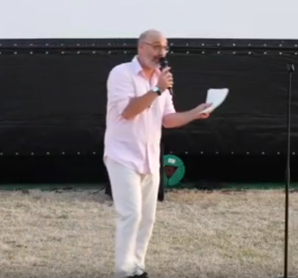 Matthieu Lermite débarque en pseudo élu local, aligne les remerciements obligés, distribue les formules convenues, puis s’écarte doucement du protocole pour glisser vers ce qui l’intéresse vraiment : parler de lui. Et du cinéma.
